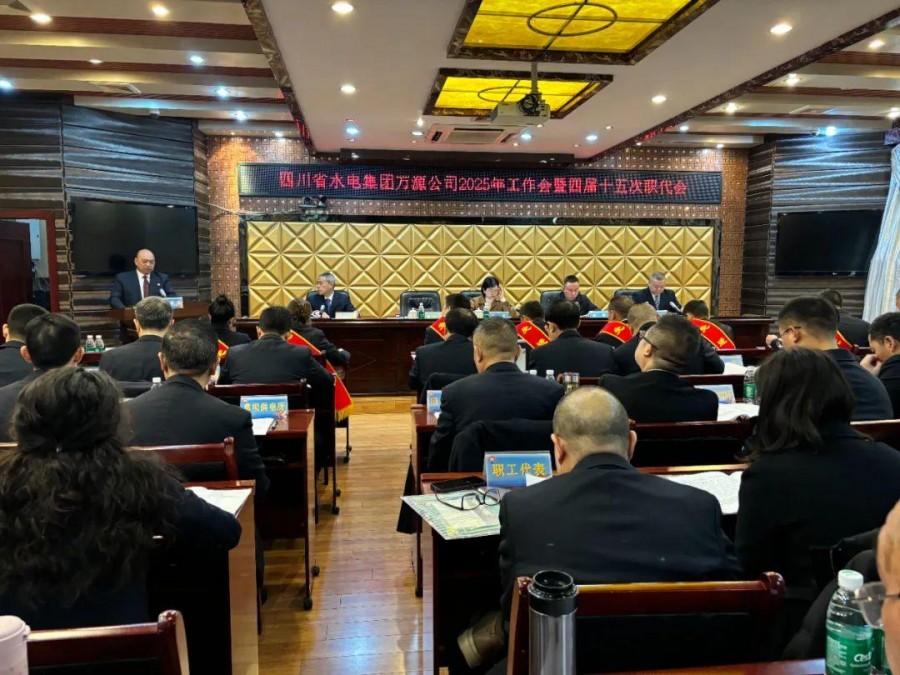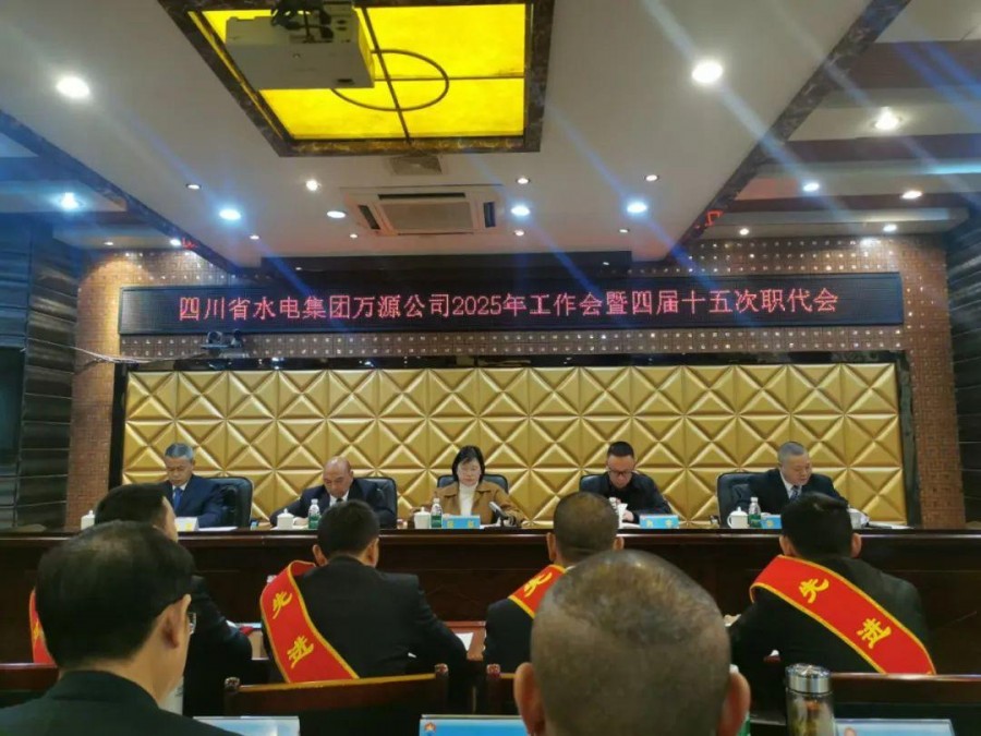 20251月9日,四川水電集團萬源公司召開2025年工作會暨四屆十五職工代表大會。黨委副書記、總經理李文主持會議,領導班子成員、支部書記、部門站所負責人、職工代表50余人參加會議,萬源市人民政府副市長張虹、萬源市經信局副局長向宇蒞臨大會指導