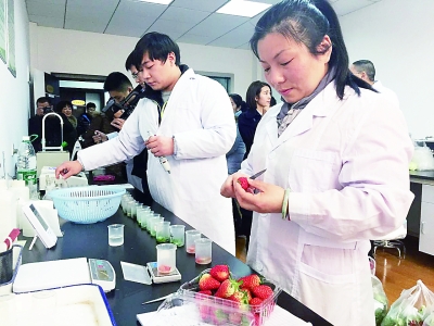在實(shí)驗(yàn)室里,東西湖區(qū)農(nóng)檢中心技術(shù)員徐艷將草莓切塊,再加入試劑進(jìn)行快速檢測。約半小時(shí)后,檢測結(jié)果顯示全部合格。“檢測主要看是否存在農(nóng)藥殘留”,徐艷說,水果生長初期需施打農(nóng)藥除病蟲害,成熟后就不需使用農(nóng)藥,草莓農(nóng)藥降解只需5天左右,其成熟上市時(shí)農(nóng)藥早已降解,市民可放心食用。